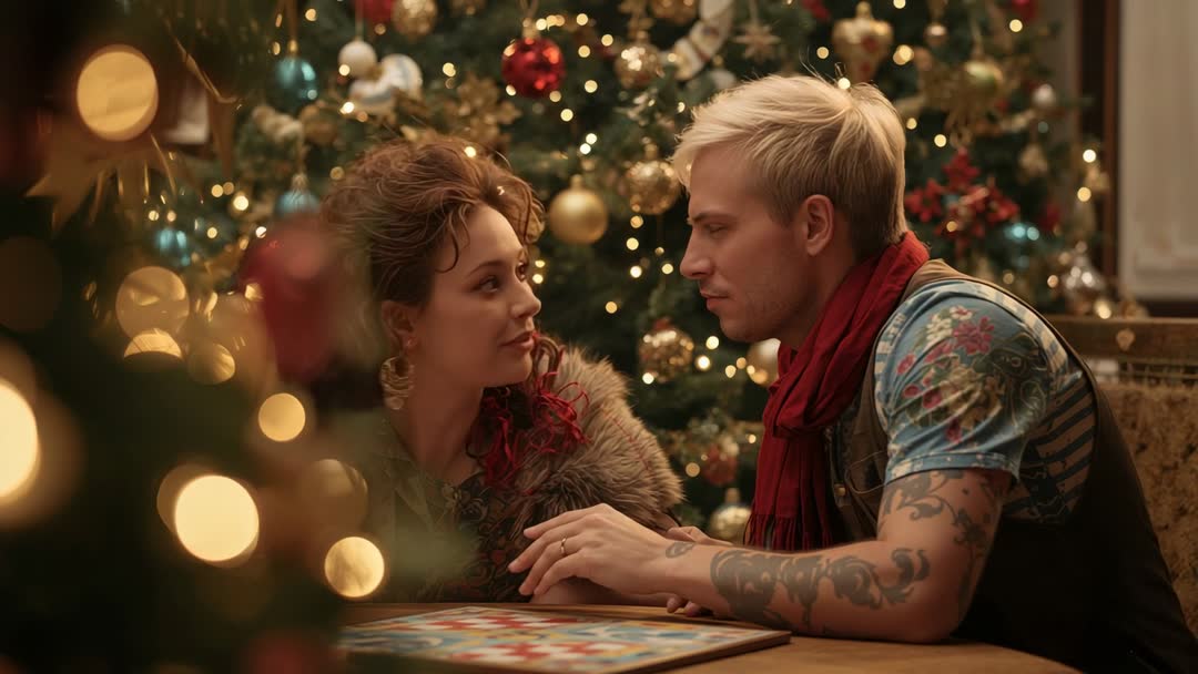 AI Generated Image. A romantic couple is leaning over a board game in a cozy room adorned with Christmas decorations. The warm glow from the tree lights adds softness to the intimate scene, emphasizing the closeness of their interaction. This depiction is ideal for themes centered around holiday celebration, romantic evenings, and intimate winter moments. Perfect for use in advertising, promotions of holiday events, or creating seasonal content for lifestyle and home decor.