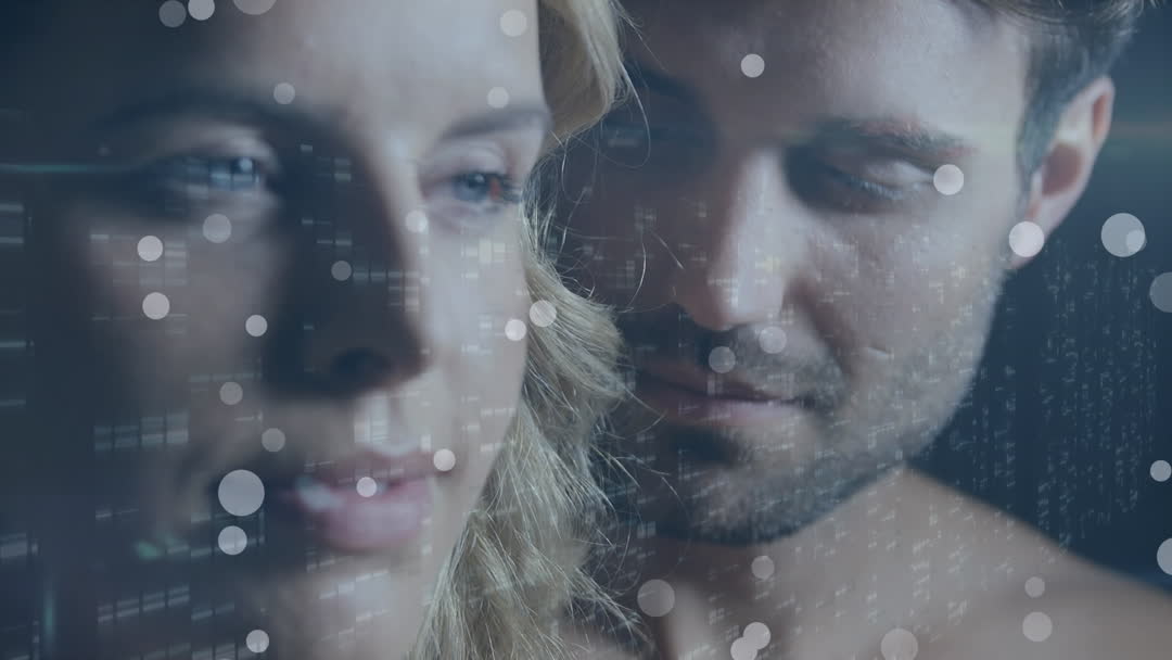 Romantic Couple with Digital Overlay in Intimate Moment Video