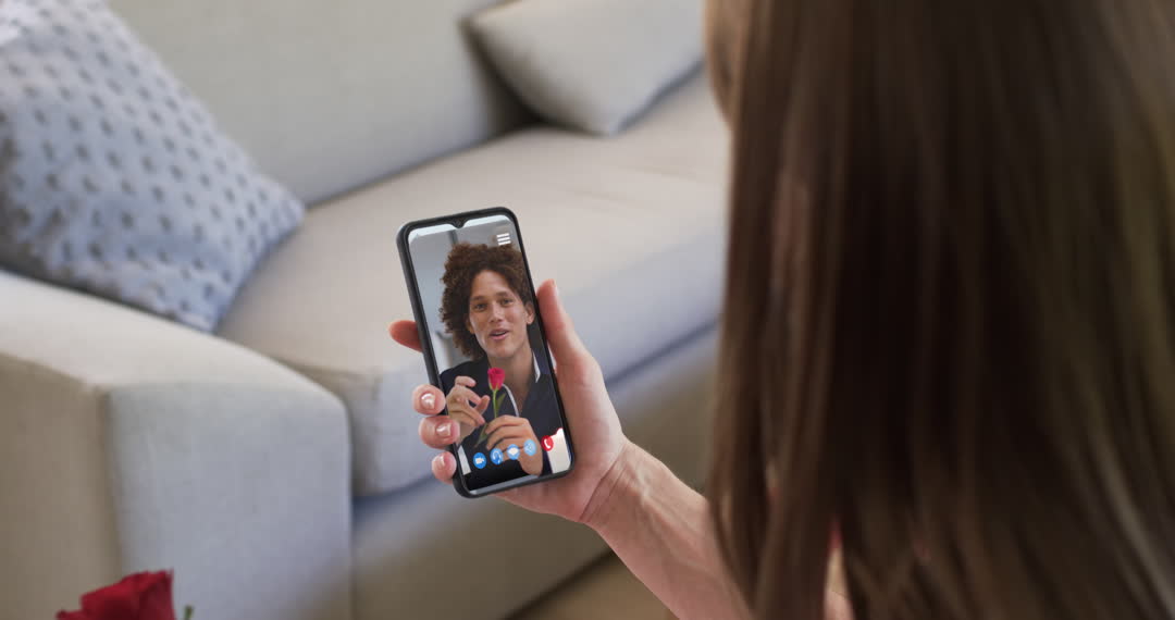 - Romantic Video Call Exchanging Roses for Valentine's Celebration
