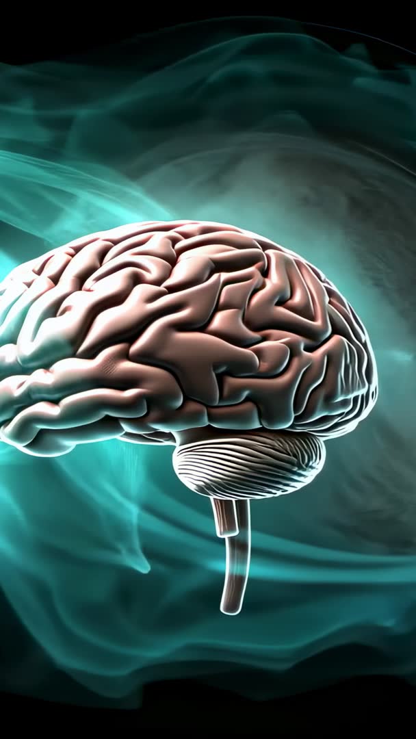 AI Generated Image. Vertical video featuring rotating 3D brain model with detailed cerebral convolutions and glowing teal aura against black void. Visual composition combining medical anatomy and futuristic digital energy, suitable for neuroscience lectures, medical training, technology presentations, mental health campaigns, science education, startup promos, social media vertical ads, and mobile wallpapers. Motion elements featuring smooth rotation and ambient teal smoke, providing dramatic focus and depth. File working well for intro sequences, looping background clips, animated headers, and promotional reels. Creative suggestions include using clip as opening sequence for medical explainer, background for podcast or webinar title cards, animated header for neuroscience blog, visual hook for biotech pitch deck, or overlay for guided meditation apps focusing on brain health. Licensing suitable for editorial, corporate, educational, and advertising use.