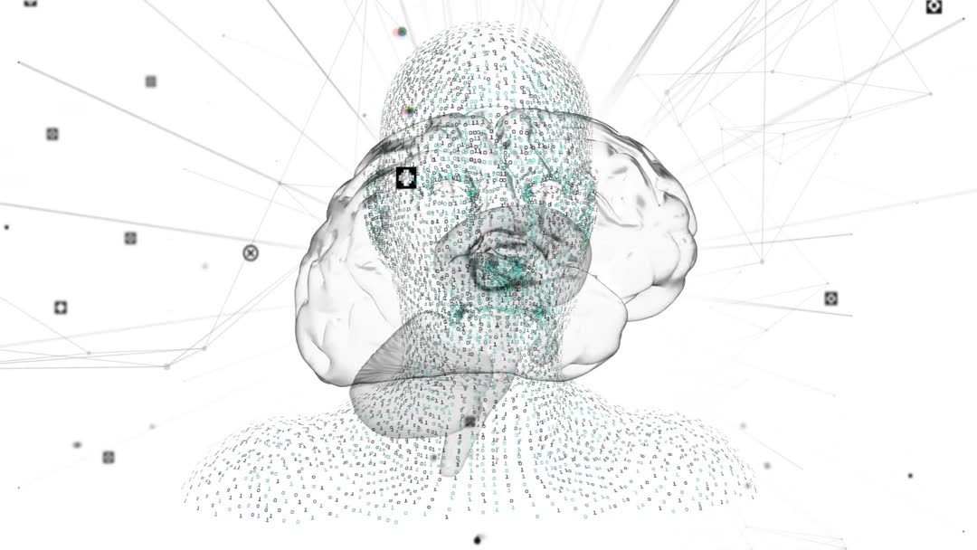 Visual highlights blend of technology and human cognition. Perfect for depicting themes of artificial intelligence, neural networks, and digital innovation. Suitable for use in presentations, tech blogs, educational materials, or as a concept video for meditation interfaces.