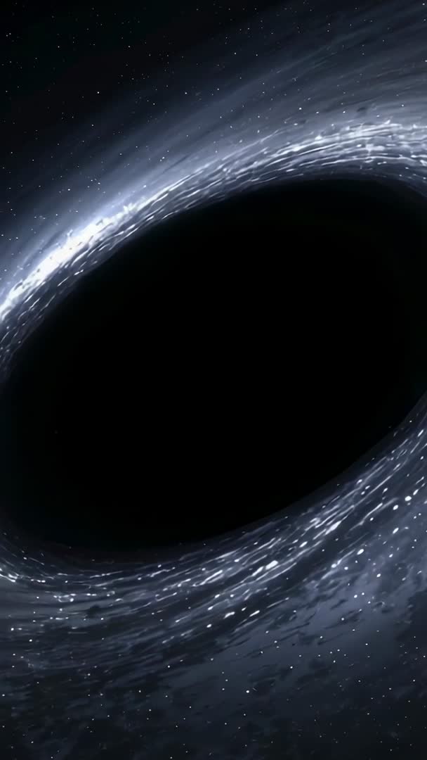 AI Generated Image. Showing rotating accretion ring orbiting black hole, sweeping dark void with glowing streaks, scattered stars, and subtle nebula haze. Vertical format optimized for mobile viewing and social reels, offering smooth rotation and loopable motion for continuous playback. Perfect for science education clips, documentary openers, sci-fi trailers, streaming overlays, website hero backgrounds, and futuristic title sequences. Color palette favoring cool blues and deep blacks provides cinematic contrast and mood, allowing text or logos to stand out when layered over center void. Delivery suggestions: trim to 15 or 30 second loops, add subtle sound design, and crop safe areas for portrait-first storytelling.