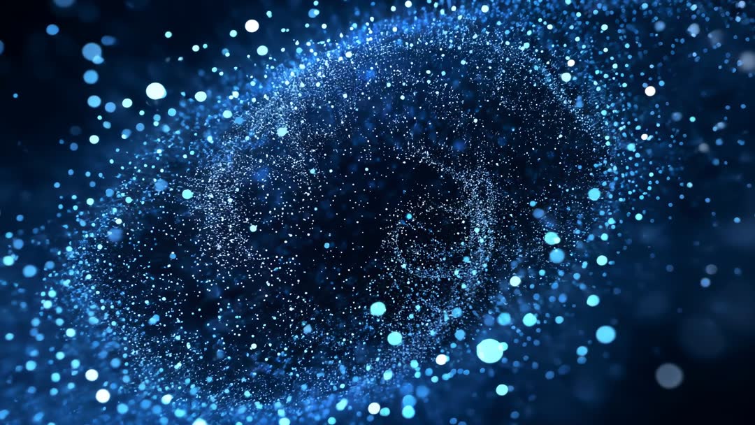 AI Generated Image. Scene showing rotating blue particle torus drifting through dark field, camera pulling closer and tilting to reveal deep void core. Luminous halo and bokeh highlights forming shimmering ring, micro particles swirling and dispersing with subtle depth of field. Visual mood evoking futuristic, cosmic, and scientific themes with electric blue and deep navy palette and cinematic contrast. Use for technology openers, sci-fi trailers, data visualization intros, website hero loops, music visualizers, broadcast idents, and corporate tech presentations. Perfect for overlaying titles, logos, lower-thirds, or animated infographics; strong center void providing negative space for text. Loop-friendly motion working well with ambient soundtrack or pulsing sound design to enhance immersive effect.