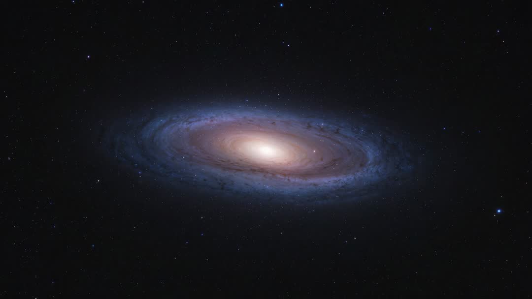 - Rotating Blue-White Spiral Galaxy Revealing Luminous Core and Dusty Arms in Deep-Sky Telescope View