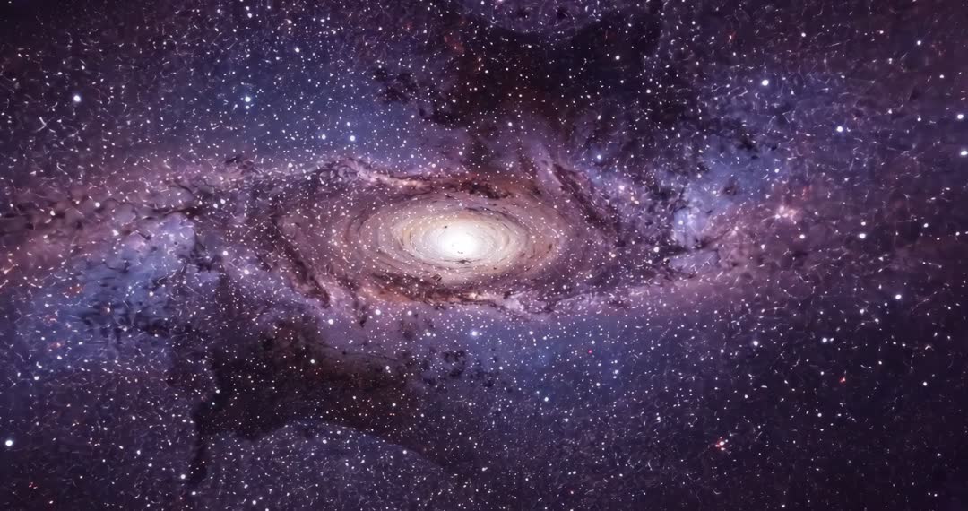 - Rotating Camera Captures Spiral Galaxy and Dust Lanes in Vast Space