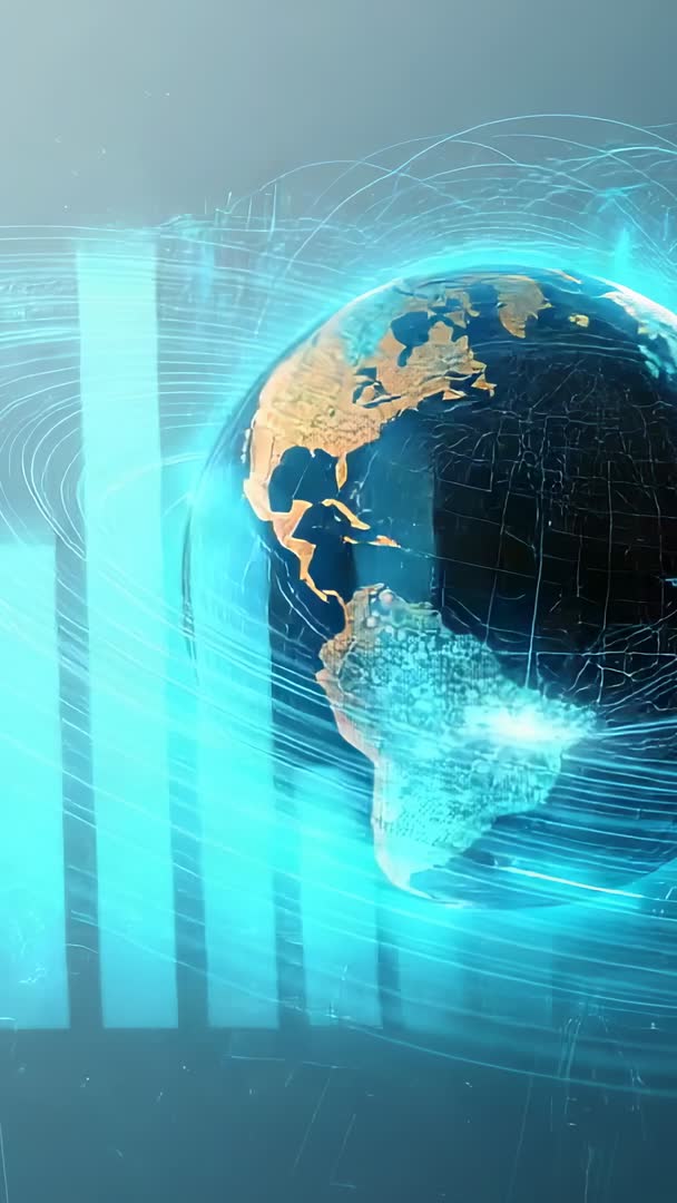 AI Generated Image. Video showing rotating digital globe with neon data arcs, glowing nodes and vertical bar graphs, delivering dynamic technology and data visualization for vertical screens. Serving news intros, corporate presentations, startup pitches, app splash screens, social media vertical ads, broadcast graphics, tech blogs, data analytics reports. Suiting header backgrounds, transition clips, product demos, event promos, onboarding tutorials, conference openers. Offering customization options including color grading, opacity tweaks, map overlay swaps, caption insertion to match brand identity. Enabling looping for continuous playback and working with motion graphics templates and common video editors. Providing futuristic, high-tech atmosphere for storytelling about connectivity, globalization, big data, innovation.