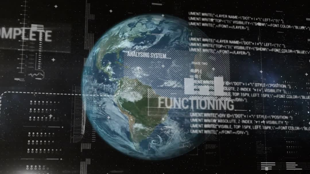 - Rotating Earth with Futuristic Data Interface and Visualizations