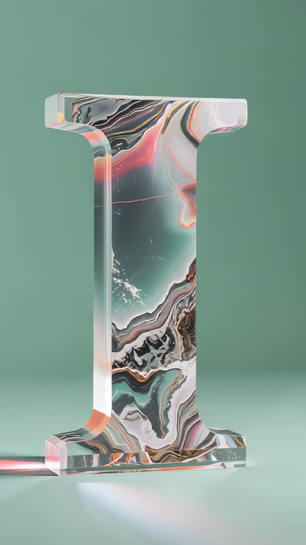 AI Generated Image. Vertical art video showing rotating glass sculpture revealing intricate marbled core with swirling colors and reflective edges. Soft studio lighting casting subtle highlights and shadows, creating premium, modern mood. Ideal for motion design projects, title sequences, social media reels, luxury product promos, architectural visualization. Color palette adaptable for branding, easy to loop for seamless background use. High-contrast reflections and smooth rotation providing dynamic visual anchor for website headers, presentation decks, and digital signage.