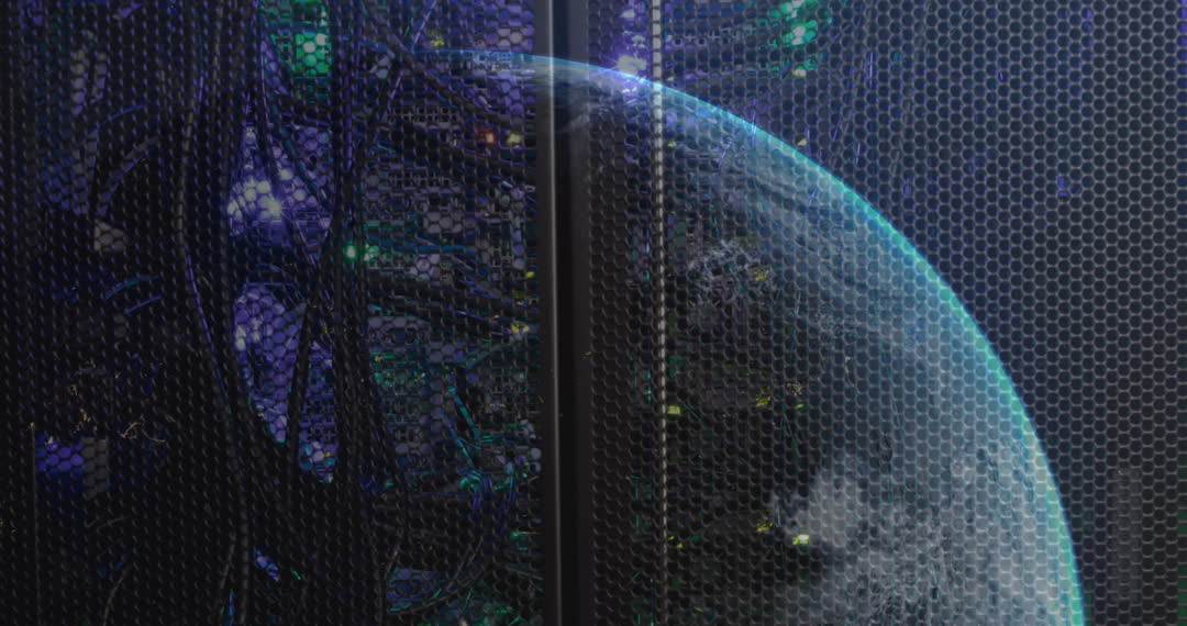 - Rotating Globe Overlay on Server Rack in Technology Center