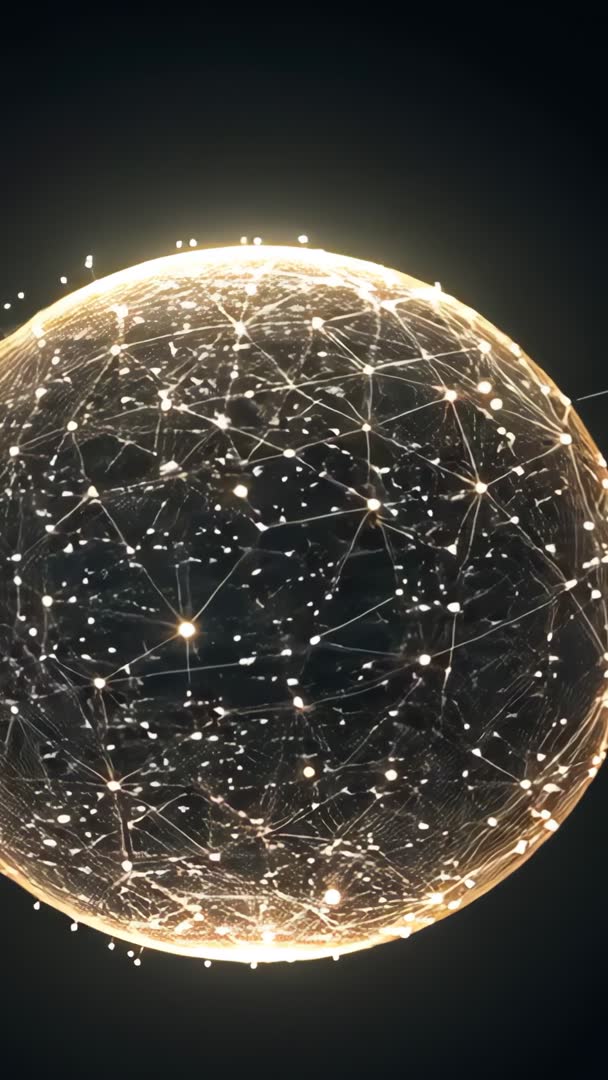 AI Generated Video. Showing rotating glowing metallic sphere floating in dark void, pulsing filaments and light nodes to convey global network and real-time data flow. Optimizing vertical display and looping playback, offering cinematic contrast and warm gold highlights against deep black backdrop. Serving tech brand intros, app splash screens, social media reels, event openers, scientific and cybersecurity visualizations, product demos and UI backgrounds. Providing MP4 and MOV with alpha channel for easy compositing into existing projects. Recommending export in 9:16 aspect ratio, 4K resolution and 30/60 fps for smooth playback and crisp detail. Suggesting color grading toward blue or gold tones to match brand palette and adding subtle audio bed for full sensory impact.