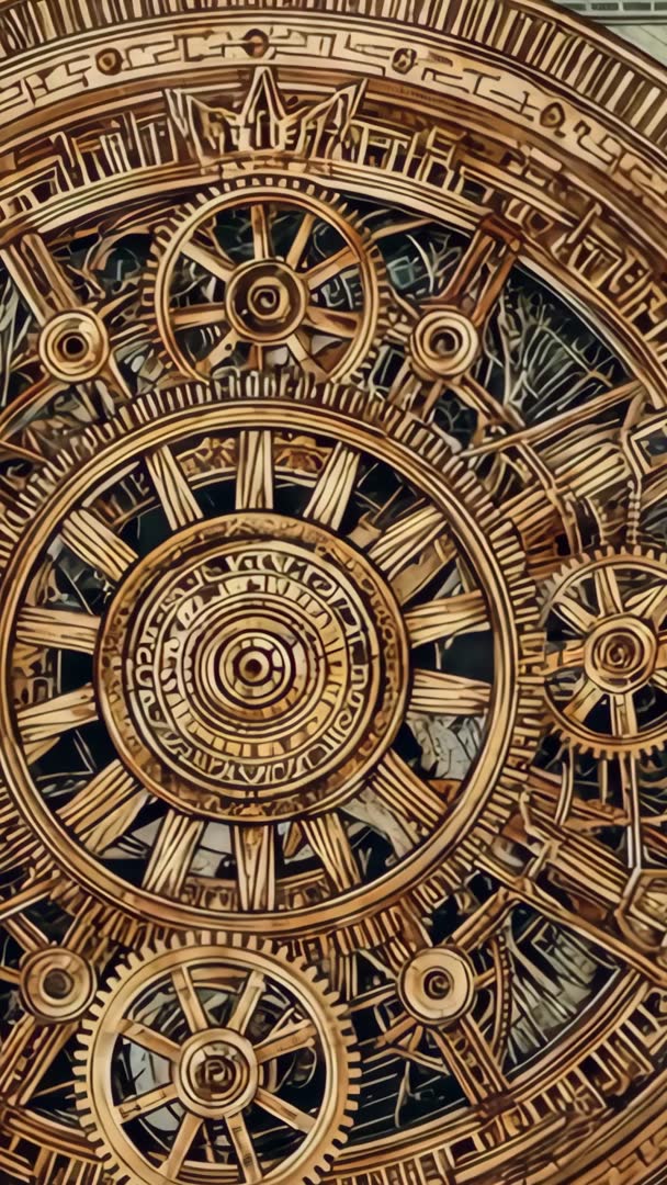 AI Generated Image. Showing close-up vertical video of rotating golden gear mechanism at startup inside museum exhibit, highlighting embossed trim and layered clockwork detail. Capturing warm brass tones, sharp metallic textures, and rhythmic wheel movement for dramatic visual impact. Serving well for museum promotion, historical documentary segments, steampunk design projects, luxury watch or jewelry branding, engineering explainer clips, and social media reels. Allowing easy overlay of logo or text in upper or lower third thanks to negative space at edges. Suggesting color grading toward warm gold and high contrast to emphasize relief and depth. Providing loop-friendly action for background motion, title opener, or animated transition use.