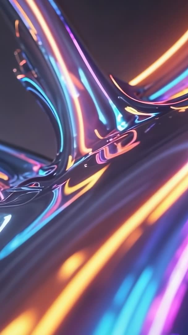 AI Generated Image. Rotating iridescent metallic form undulating in void, reflecting neon streaks of cyan, magenta, amber across glossy surface. Smooth loop and vertical composition creating immersive tall-frame motion ideal for mobile viewing. High-contrast neon highlights and deep shadows producing dramatic futuristic look. Perfect for vertical social media ads, Instagram Stories, TikTok backgrounds, mobile wallpapers, app intros, product launch promos, electronic music visuals, VJ loops, club visuals, website hero elements, tech conference openers. Combine with bold typography and minimal UI to create modern promotional content. Adjust color grading and speed to match brand mood. Export as MP4 or GIF for seamless looping and easy integration into video editors and motion graphics projects.