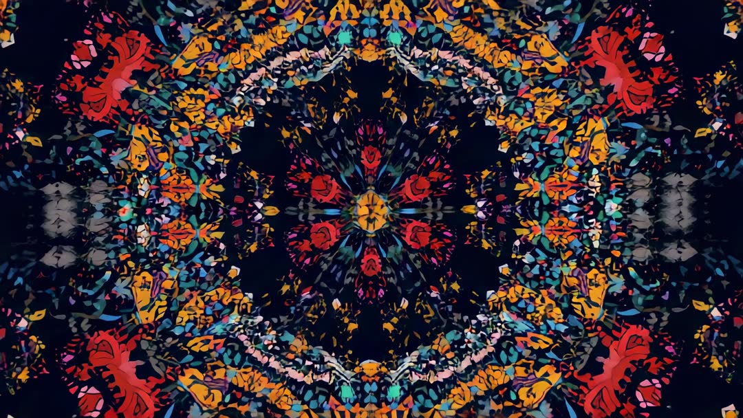 AI Generated Image. Showing rotating hexagon mandala formed from layered colorful tessellated shapes, rings expanding outward while petal motifs shifting and pulsing to create hypnotic meditative motion. Featuring deep navy backdrop with vivid red, orange, teal, pink and yellow accents, high contrast colors enhancing depth and radial symmetry. Suited for looping backgrounds in music videos, VJ performances, live visuals, meditation apps, social media reels, website hero sections and stage projections. Working well as overlay for motion graphics, album art animations, digital wallpapers, textile prints and packaging patterns. Delivering seamless looping potential and strong center focus for motion design projects. Providing creative starting point for color grading, speed ramping and kaleidoscopic transitions. Serving 4K and HD projects with easy cropping for square or widescreen layouts and tiling for repeat patterns.