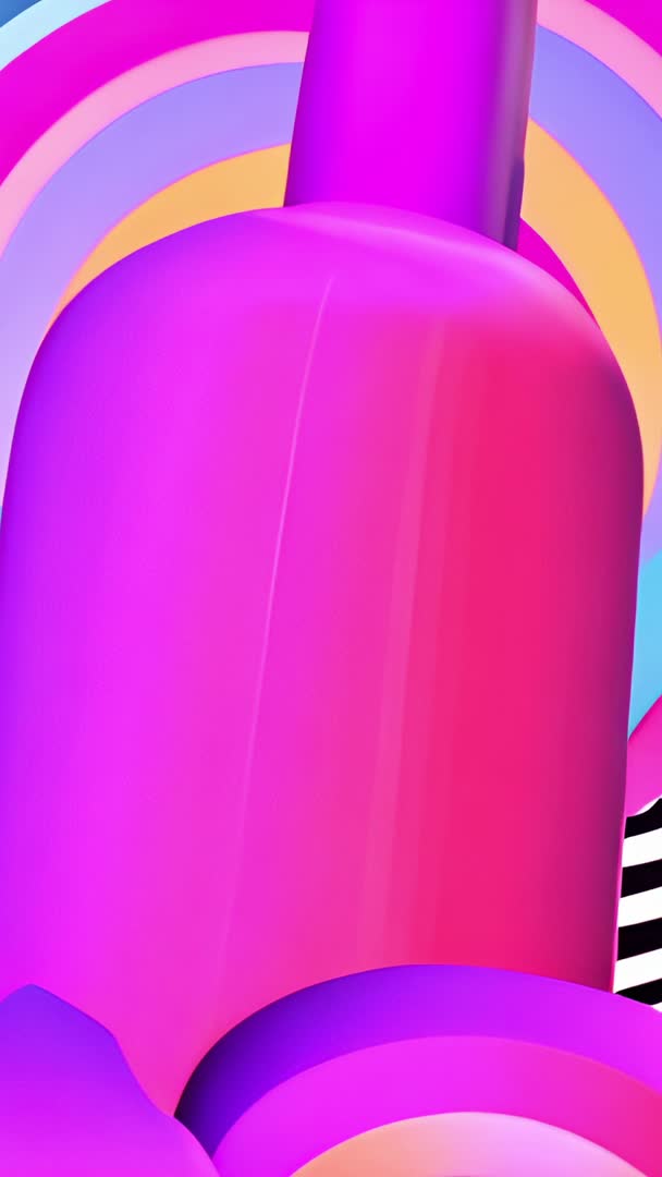 AI Generated Image. Vertical looping motion video showing magenta cylinder rotating after pause, revealing slender neck against layered pastel arches and gradient rings. Featuring smooth 3D animation, glossy surfaces, soft highlights, and vibrant color transitions across pink, purple, blue, and warm yellow tones. Presenting minimalistic modern composition with bold geometric shapes and negative space for text placement. Suiting social media stories, mobile ads, app splash screens, fashion and beauty promos, motion design showreels, and event visuals. Working as looped background for title cards, product mockups, transitions, or DJ visuals. Pairing with upbeat electronic soundtrack, adding bold sans-serif headlines, and adjusting color overlays to match brand palette. Offering vertical 9:16 composition, delivering MP4 H.264 export and optional 4K files for large-format playback. Serving as intro for product reels, backdrop for promotional typography, or dynamic filler for mobile story content.