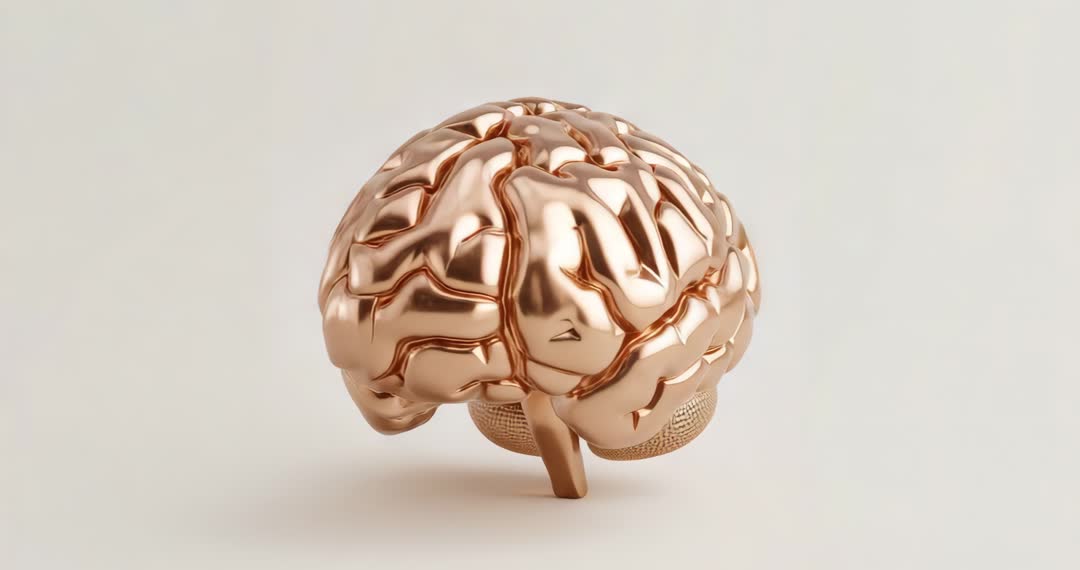 AI Generated Image. This video showcases a rotating brain model in a layer of copper-gold metal finish. With its reflective surface and minimalist beige background, it captures the essence of innovation, making it ideal for themes related to neuroscience, technology, and artificial intelligence. Perfect for use in educational materials, technology-related video presentations, or future-forward design projects.