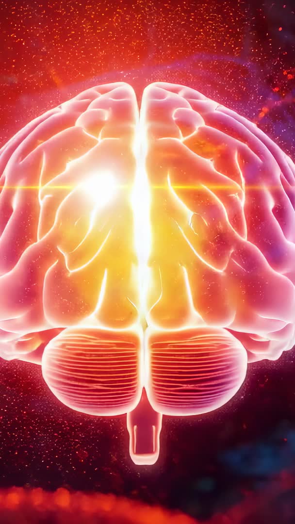 AI Generated Image. Vertical looping video showing rotating neon brain model floating through stylized data space, glowing central light beam splitting hemispheres and red particles drifting in background. Perfect for neuroscience presentations, medical animation intros, AI and tech marketing, startup pitch decks, education modules, social media vertical ads such as Instagram Reels and TikTok, mobile hero backgrounds. Serving as dynamic opener for conference sequences, explainer videos, app demos, interactive exhibits, and online courses. Providing strong center vertical axis for headline or logo overlays, with high-contrast warm color palette and clear cortical and cerebellar detail. Compatible with 9:16 vertical aspect ratio and loop-ready compression for smooth playback on mobile devices. Suitable for scientific visualization, innovation branding, cognitive research storytelling, and futuristic UI concepts.