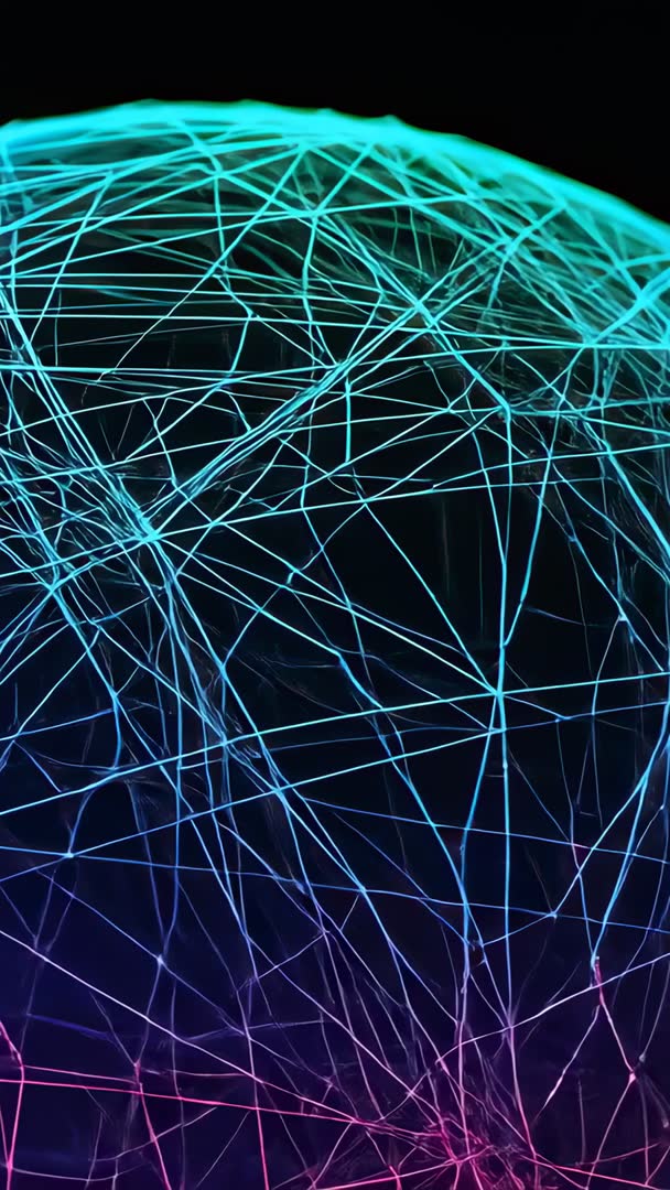 AI Generated Image. Video showing rotating neon wireframe globe pulsing with intersecting lines and glowing nodes against black void. Colors shifting from cyan to magenta, creating dynamic futuristic mood. Looping motion allowing seamless background for vertical displays and mobile feeds. Ideal for tech product intros, app onboarding screens, social media vertical ads, mobile wallpapers, event visualizers, network and data visualization segments. Text and logo placement working best in upper third or lower third where lines appear less dense. Suggested durations include 6-15 second loops for social platforms and 30-60 second versions for presentation or stage visuals. Design notes recommending subtle glow, added particle dust, and soft vignette to increase depth and cinematic feel. Color grading advice suggesting boost to cyan and magenta channels and slight contrast lift for punchy neon. File suggestions include high-resolution MP4 or MOV, optional alpha channel for compositing, and optimized vertical aspect for mobile distribution. Use cases include brand promos, tech explainers, startup pitch decks, music visualizers, AR/VR previews, and UI motion backgrounds.