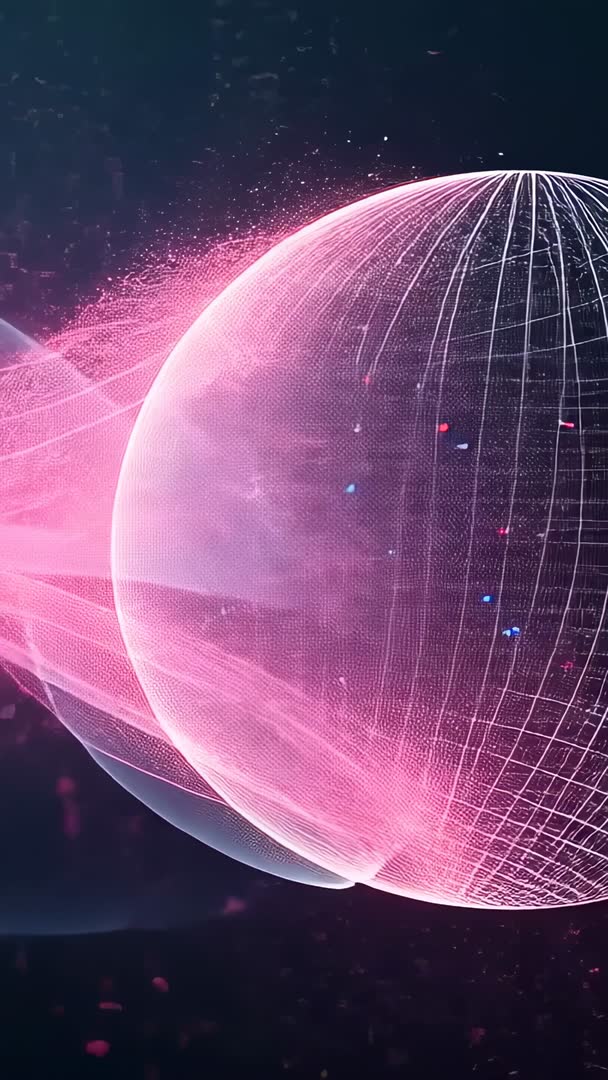 AI Generated Image. Featuring rotating neon wireframe orb charging while ribbon-like particle streams flow across glowing mesh grid, creating dynamic cosmic tech atmosphere. Combining vibrant pink and purple tones with dark space contrast for striking visual depth and motion. Serving as vertical loop for mobile-first content, social reels, app intros, and tech product promos. Providing atmospheric background for livestream intros, music visualizers, event projection, presentation hero panels, and website landing sections. Offering seamless loopability for continuous motion backgrounds and abstract branding sequences.