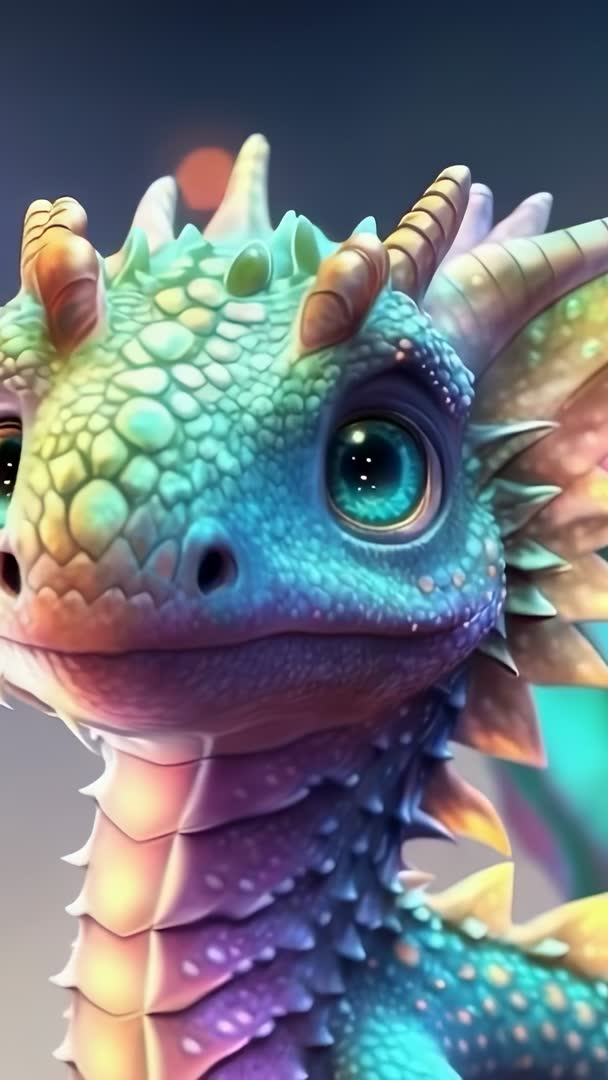 - Rotating Pastel CGI Dragon Head Blinking in Vertical Video, Vibrant Fantasy Close-Up