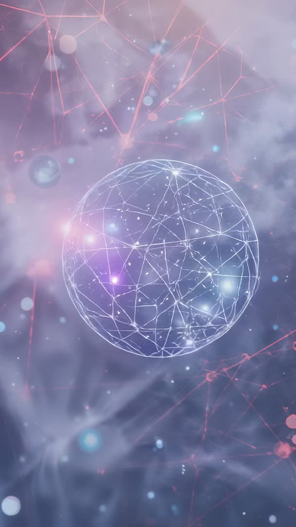 - Rotating Pulsing Wireframe Sphere Floating in Pastel Network Mist Vertical Animation