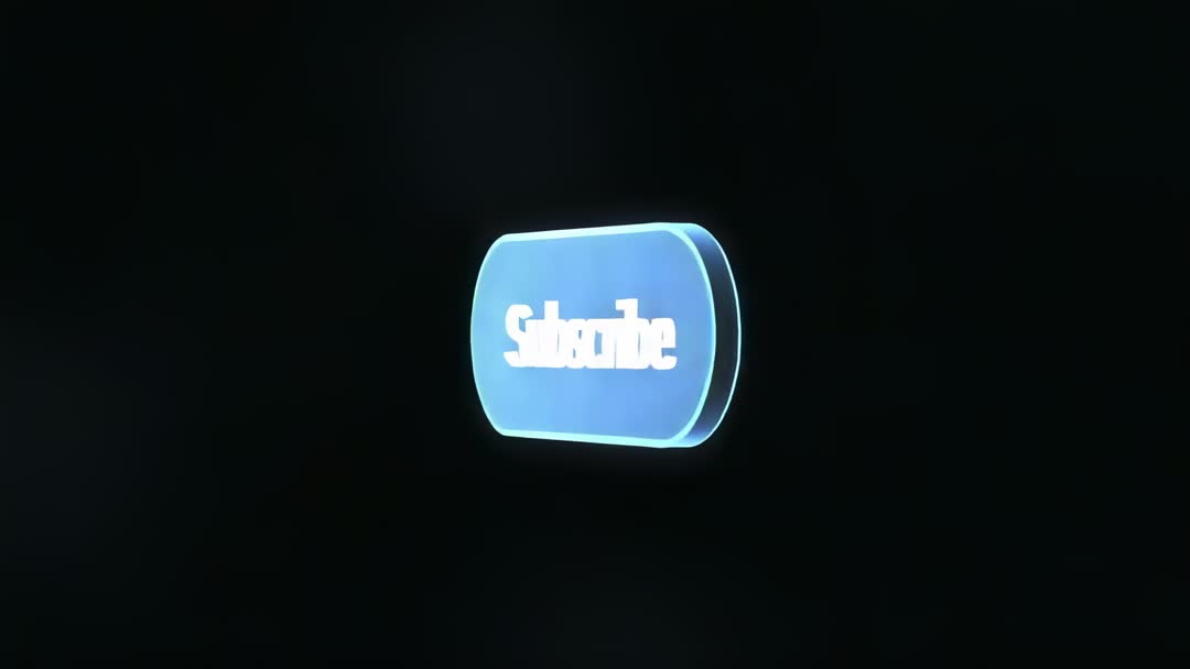- Rotating subscribe capsule with neon blue glow, 3D edge and pulsing rim for video outros