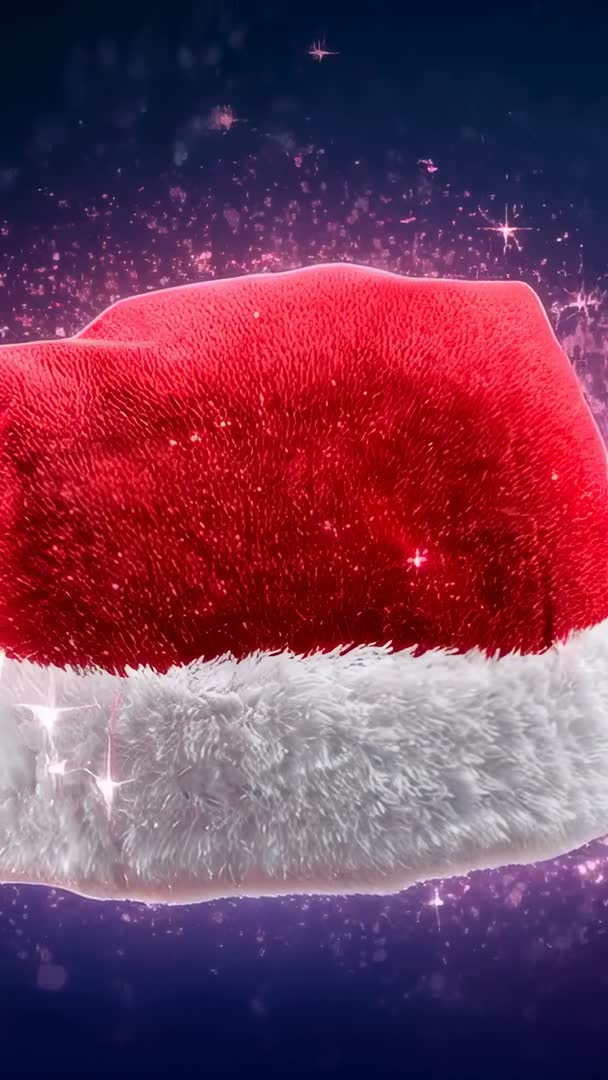 Rotating Velvet Santa Hat with Sparkling Starfield for Festive Vertical Video Video