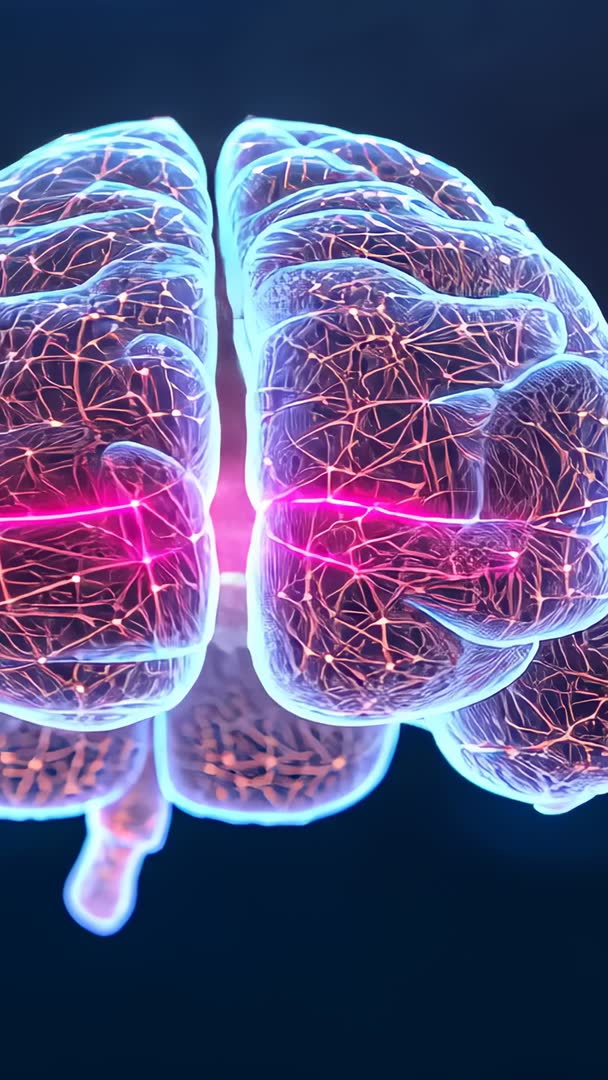 AI Generated Image. Rotating vertical 3D brain animation showing pulsing neural mesh with magenta sweep traveling through cerebral hemispheres. Neon filaments and glowing nodes highlighting connectivity and signal flow across networks. High-resolution loop fitting neuroscience presentations, medical explainer videos, technology promos, and digital backgrounds. Use for educational lessons, research visualizations, conference intros, website hero banners, or social media reels. Offering easy customization through color grading, speed adjustments, and looping for brand alignment and pacing.
