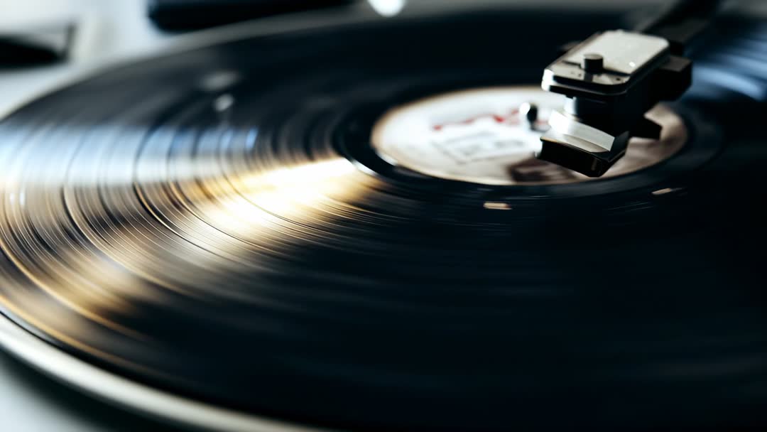 Rotating Vinyl Record on Turntable Playing Timeless Music Video