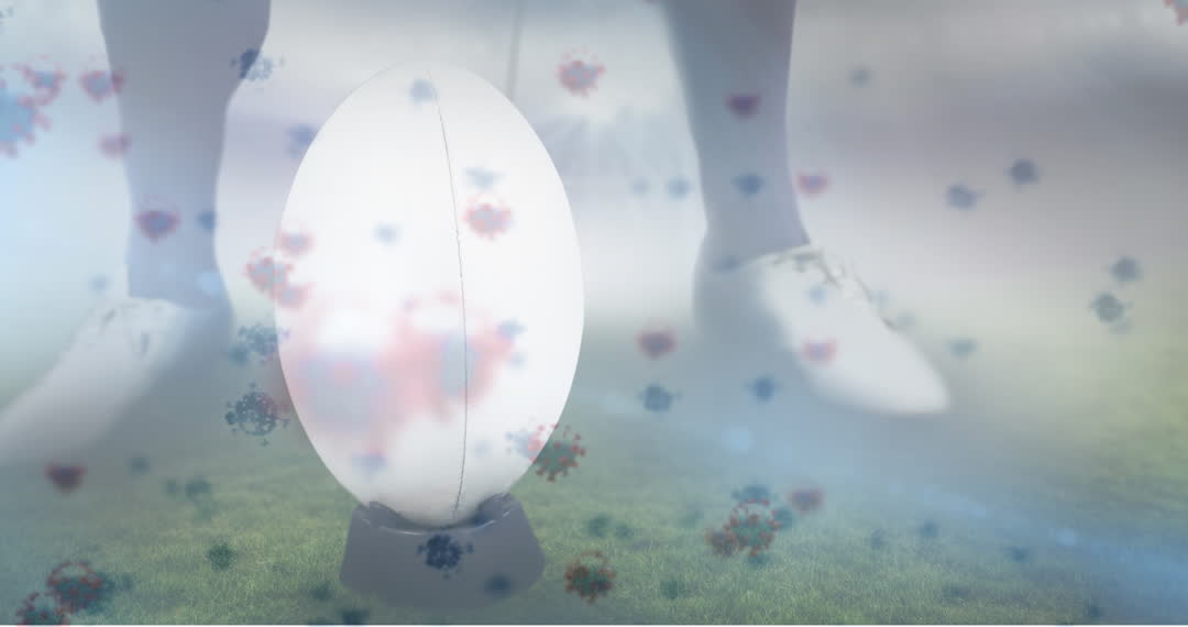 - Rugby Ball on Field Amidst Floating Virus Particles