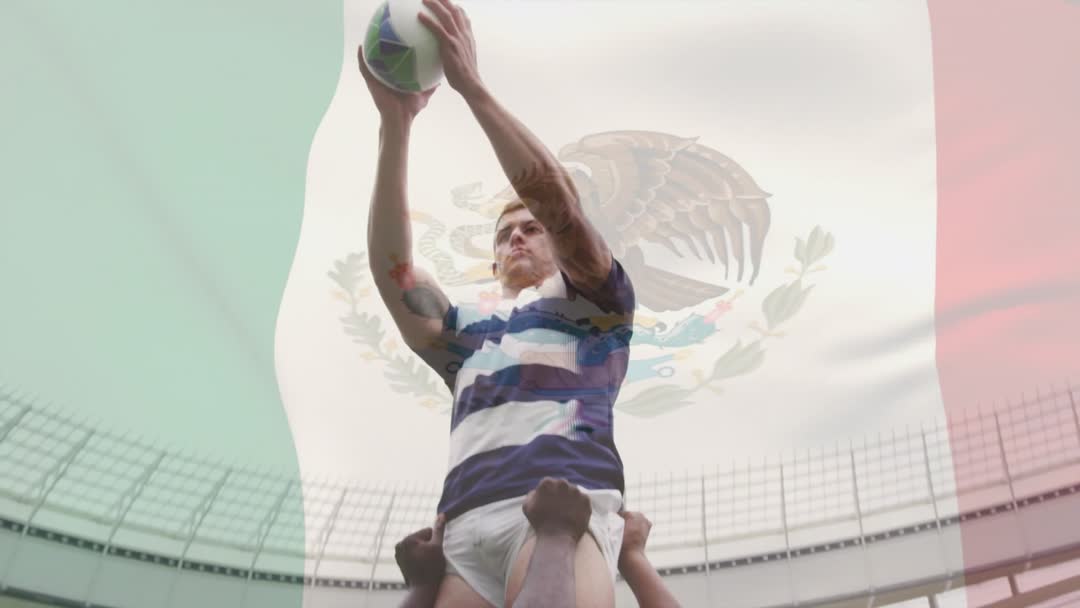 - Rugby Player Performing Lineout Under Mexican Flag