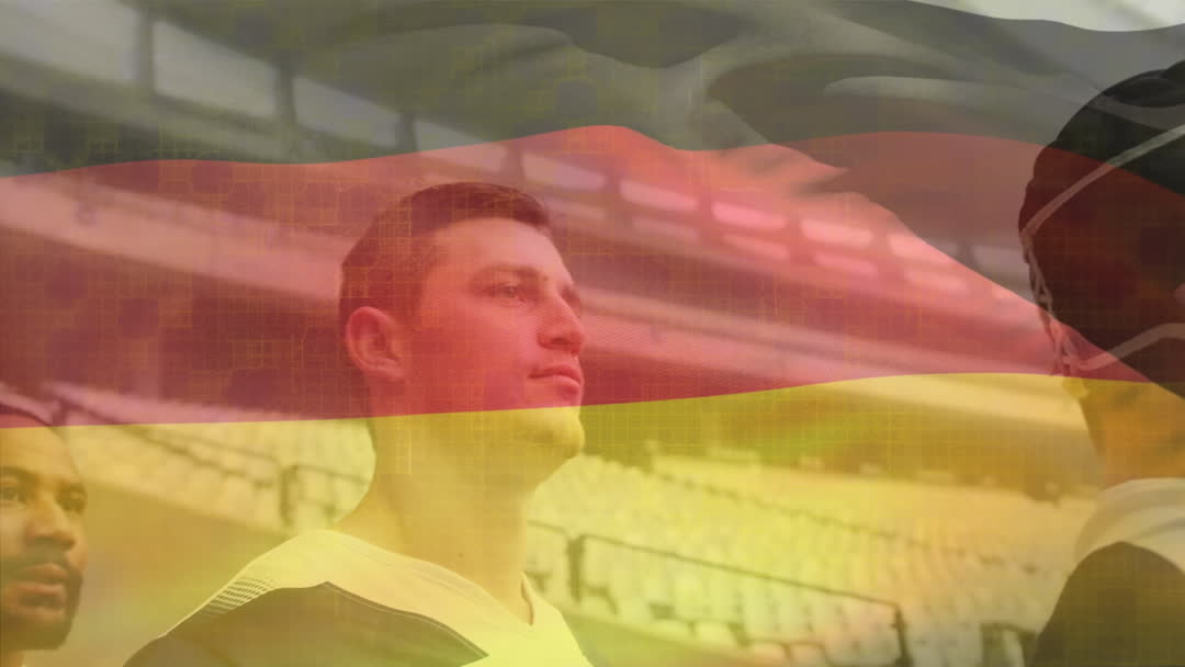 Rugby Players with German Flag Overlay Symbolizing Team Spirit Video