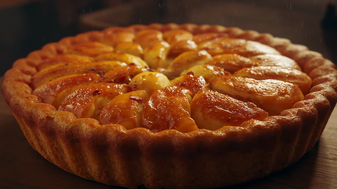 Rustic Fruit Tart with Golden Crust on Wooden Surface Video