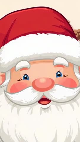 AI Generated Video. Showing close-up of Santa Claus opening eyes, smiling, and giving warm welcome while seated in cozy chair, wearing classic red hat and fluffy white beard. Featuring bright blue eyes, rosy cheeks, soft animation and playful expression, creating friendly holiday mood. Designed for vertical mobile platforms and social stories, offering short loop-friendly clip ideal for quick festive greetings. Serving as social feed opener, Instagram or TikTok story, mobile ad creative, email header, animated sticker, kids content intro, in-store holiday loop, or greeting card animation. Allowing easy customization for branding and text overlays; supporting bright seasonal color palette and family-friendly tone.