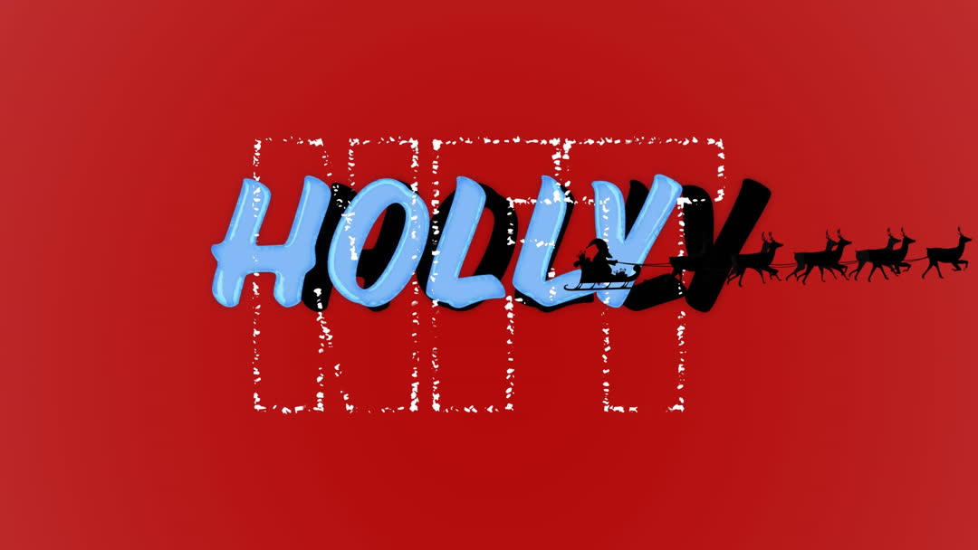 Digital animation featuring Santa Claus in his sleigh pulled by reindeer. Artistic letters give depth while the red background enhances the festive feel. Ideal for Christmas promotions, holiday greeting designs, seasonal advertising, and decoration concepts focusing on cheerful celebrations.