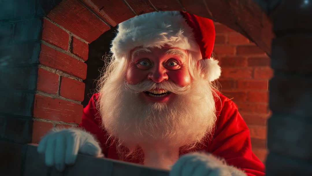 Santa Emerging from Chimney with Bright Smile Illuminated Video