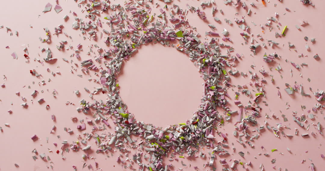 - Scattered Confetti Forming Circular Frame on Pink Background