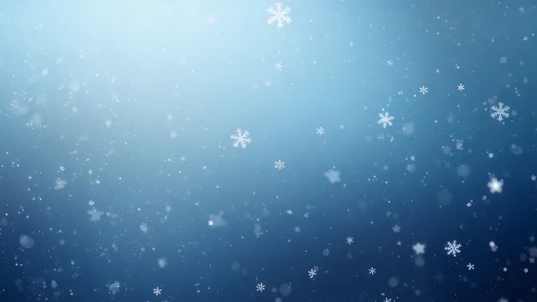 - Scene Opening: Snowflakes Drifting Over Soft Blue Gradient with Upper-Left Bokeh Glow