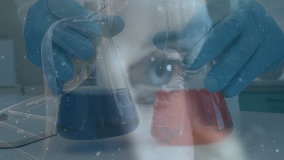 Depicts concept of modern science through an overlay of a laboratory scene with an eye. The creative blend of lab activities and DNA illustrations projects futuristic science and technology innovations. Suitable for use in articles or videos about scientific discovery, biotechnological advancements, and research processes.