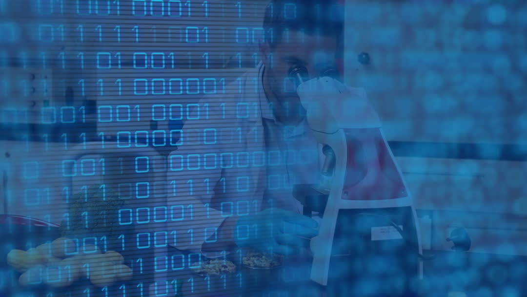 A scientist uses a microscope in a laboratory while binary code represents scientific data analysis. This video underscores themes of technological advancement and scientific research. Ideal for illustrating concepts in scientific innovation, data-driven research, and modern laboratory techniques.