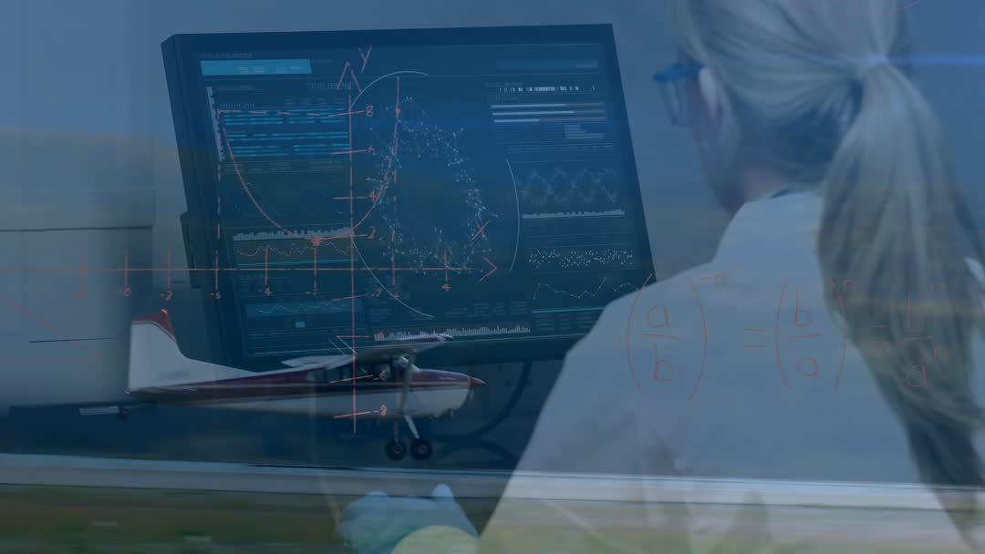 <a target="_blank" href=https://pikwizard.com/video/scientist-analyzing-data-with-equations-and-airplane-in-background/b85221a35a227b9cf55e8a49e05eb736/>PikWizard</a>