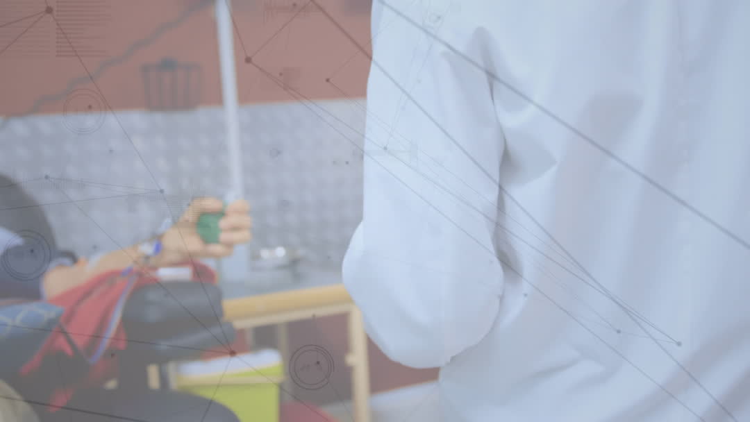 An individual working in a laboratory environment, depicted through advanced visual animations representing networking and data connections. This visualization captures the essence of cutting-edge scientific research, suitable for use in promoting healthcare innovations, education in medical fields, or showcasing state-of-the-art laboratory environments.