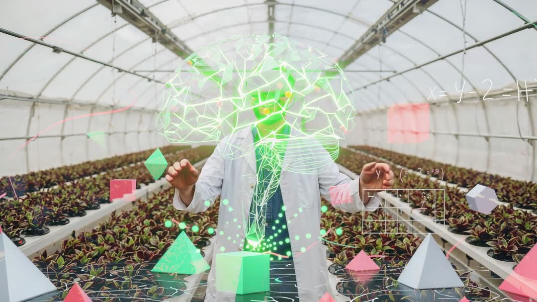 - Scientist Utilizing AI in Greenhouse for Plant Modeling