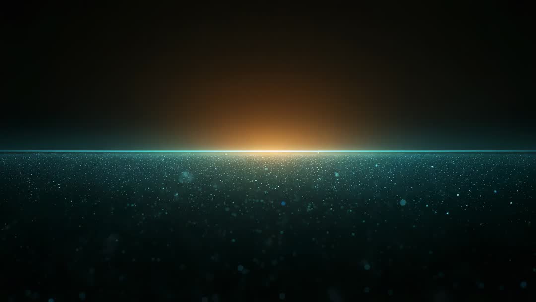 AI Generated Image. Looping cinematic video showing warm core brightening along thin cyan rim at horizon over drifting particle plane in dark void. Orange to teal gradient creating dramatic focal point for titles and transitions. Serving sci-fi title sequences, website hero banners, streaming intros, product reveal backgrounds, and broadcast graphics. Working well with text overlays and logo reveals, providing negative space above horizon for copy placement. Delivering seamless loop; recommending color grading and speed adjustments to match project tone. Suitable for tech, space, science, innovation, and digital marketing projects.