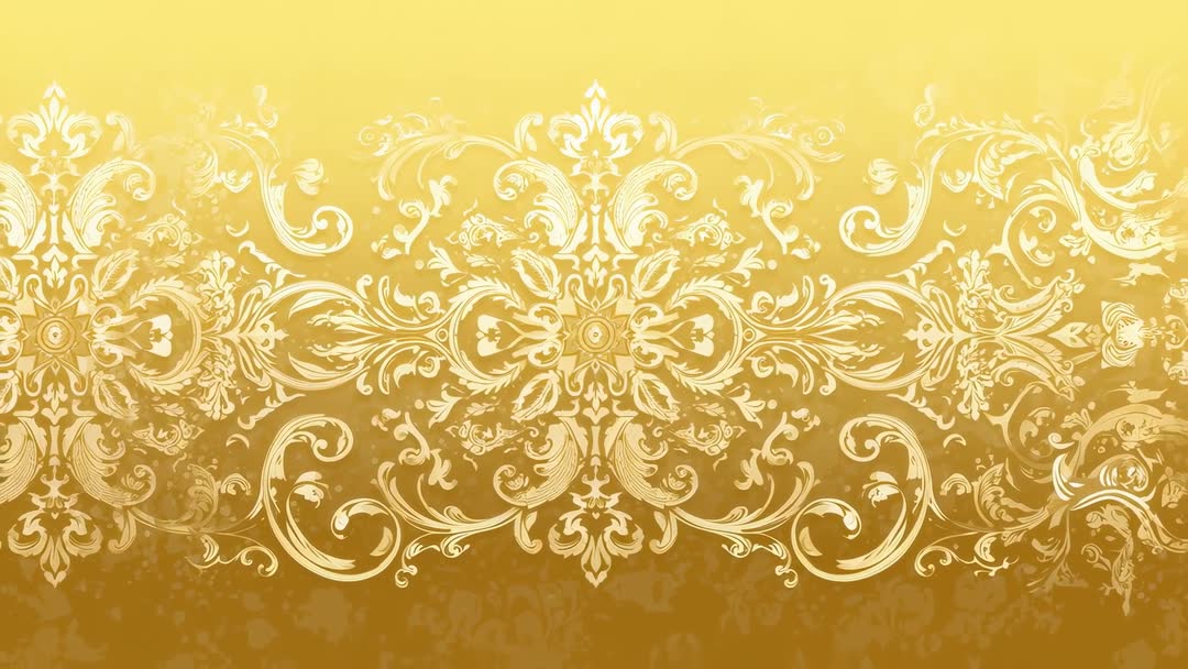 - Seamless Gold Filigree Loop with Ornamental Rosette Scrolling Across Luminous Gradient