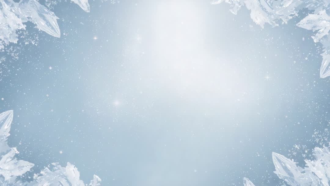 AI Generated Video. Loop starting with pulsing central blue glow and drifting snow specks, frosty ice crystals framing corners and edges, creating serene winter ambience. Featuring soft bokeh highlights and subtle sparkle, offering versatile motion backdrop for holiday and seasonal projects. Working well for greeting card animations, website hero banners, social media reels, digital signage, streaming overlays, event projections, and product promos. Center space providing clean area for text, logos, or lower thirds. Looping composition allowing seamless repeat; slow playback enhancing calm mood, speed ramping adding cinematic drama. Color grading and tinting enabling brand matching; overlaying light leak or particle layers adding depth. Including AI-generated elements for modern digital aesthetic. Deliverable idea: 10-20 second loop rendered in 1080p or 4K for broadcast and web use.