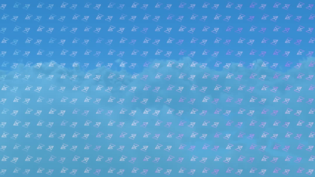 This visual features abstract shapes creating a seamless pattern against a blue sky sprinkled with clouds. It encapsulates themes of networking and technology, perfect for conveying concepts in global communication, digital marketing, and graphic design. It can be leveraged for presentations, websites, or backgrounds in tech-related initiatives.
