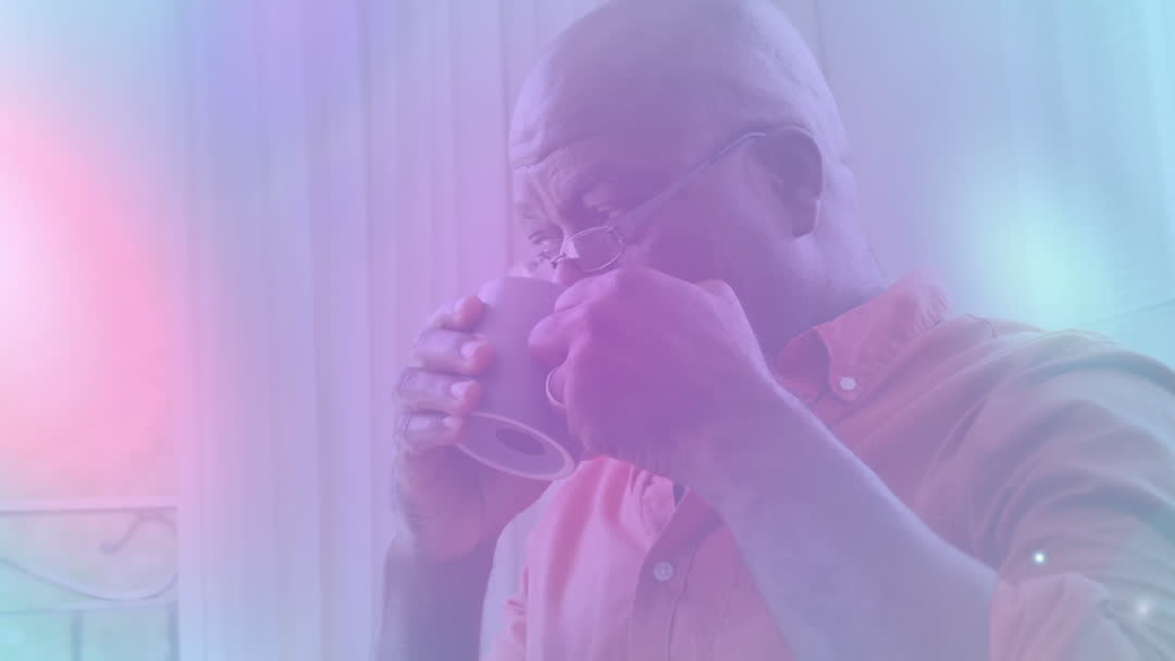 - Senior African American Man Enjoying Morning Coffee at Home with Lens Flare
