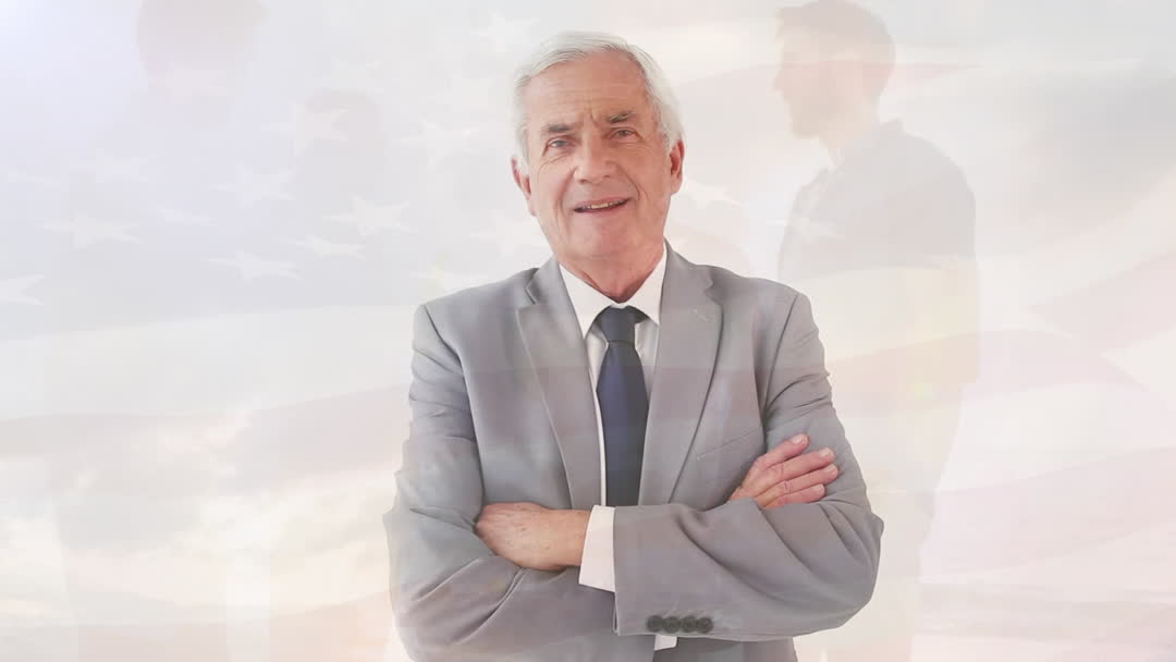 Senior Businessman with USA Flag in Background Overlay Video