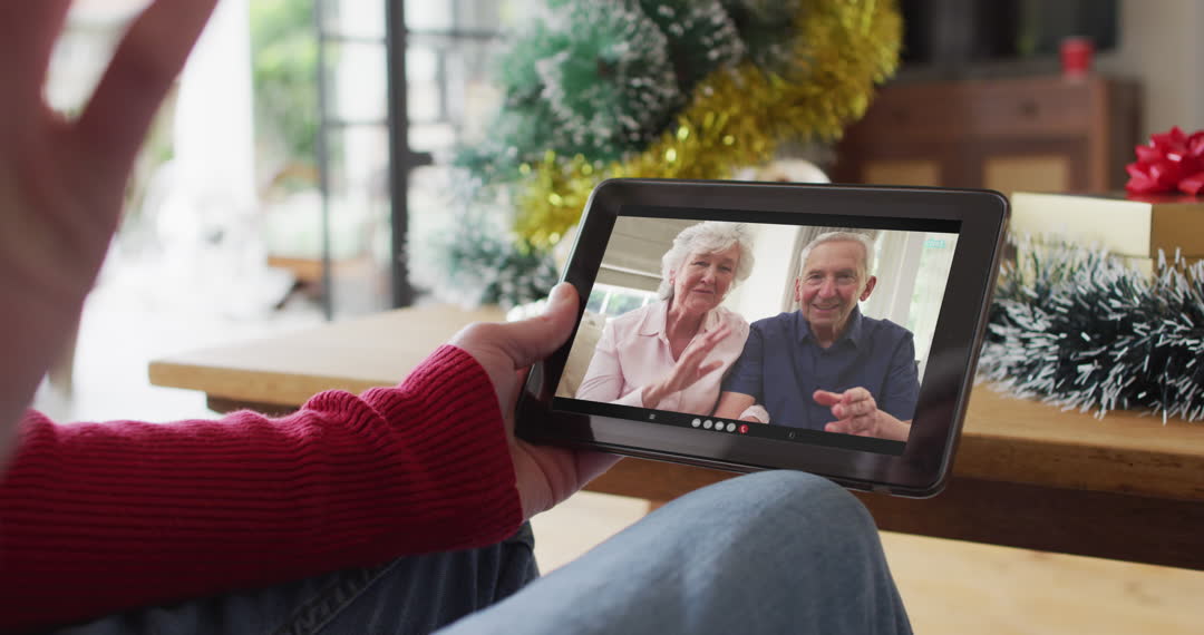 - Senior Couple Enjoying a Christmas Video Call with Family
