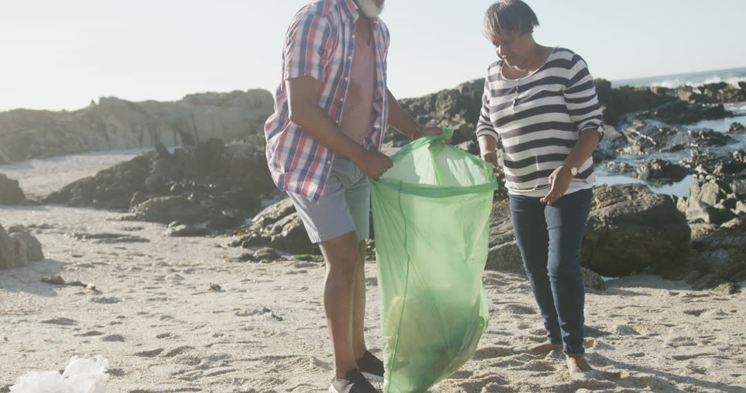 - Senior Couple Enjoying Beach Clean-Up Together